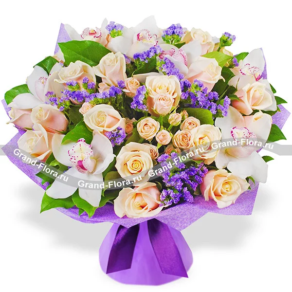 Балерина – букет из кустовых роз и орхидей