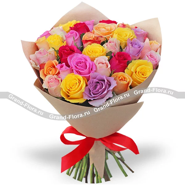Роза микс Российская - 29 штук 40-50 см, упаковка, лента.